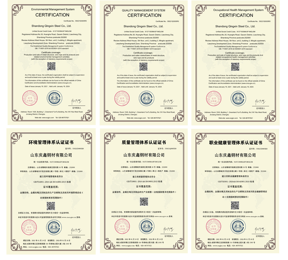 庆鑫钢材一直秉承 “ 质量第一,科学管理” 的经营方针和 “ 诚信经营、信誉为本 ” 的经营理念,建立了健全质量的保证体系。